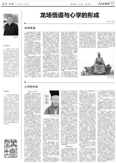 2017年12月18日《人民政协报》第11版“学术讲坛”刊载贵州大学中国文化书院荣誉院长、贵州阳明文化研究院副院长、中国明史学会王阳明研究会副会长、国际儒学联合会理事、贵州儒学研究会会长张新民教授在中国艺术研究院研究生院高端文化艺术讲座“名师讲坛”上的演讲整理文稿。全文如下:
