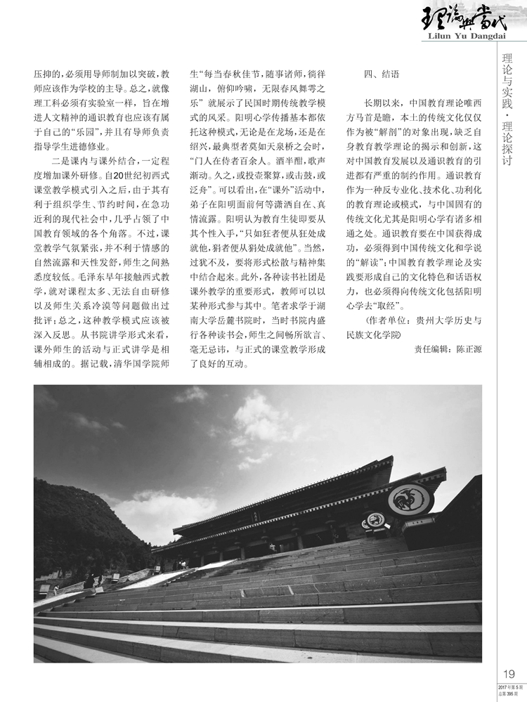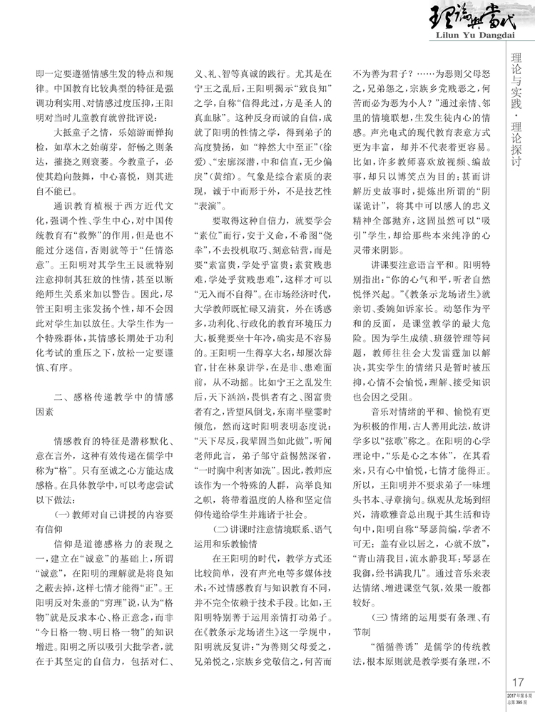 年第5期《理论与当代》刊载贵州大学历史与民族文化学院(中国文化书院)副教授王胜军博士研究论文,题:“阳明心学与通识教育中的情感因素”。全文如下: