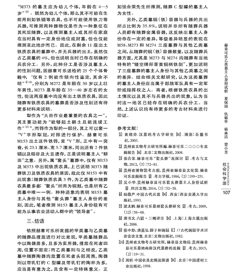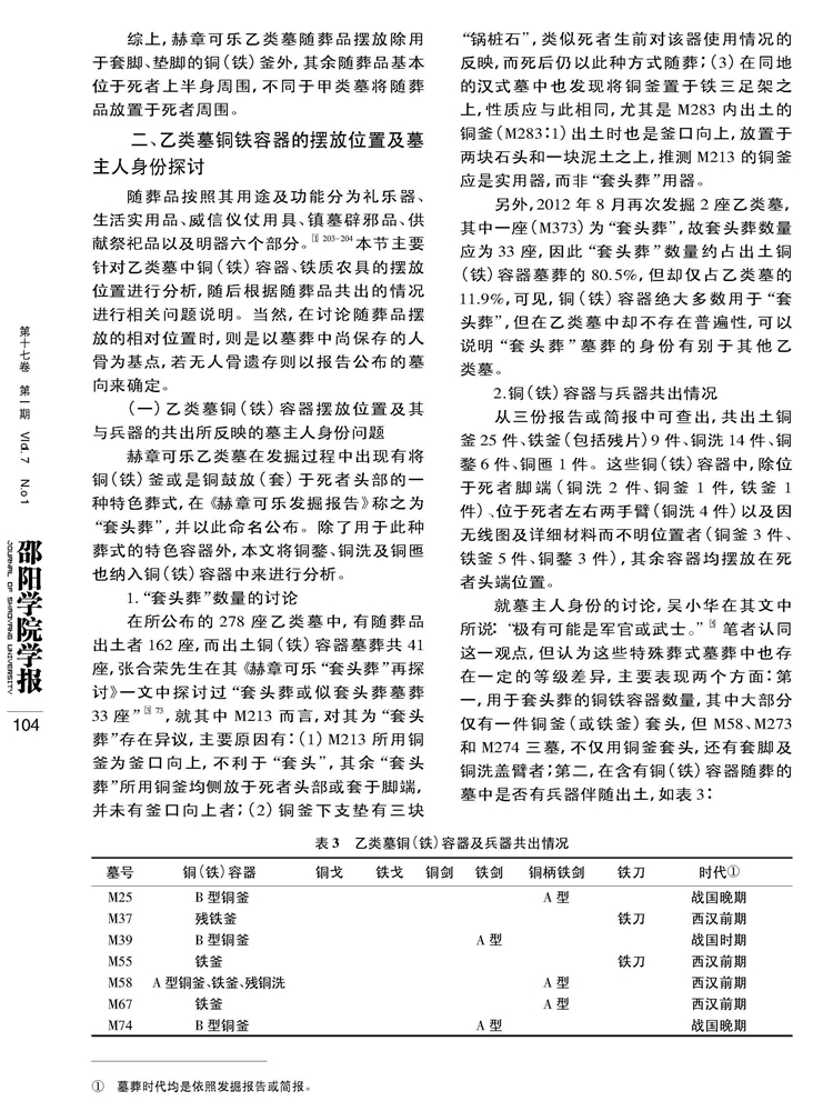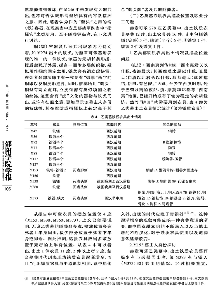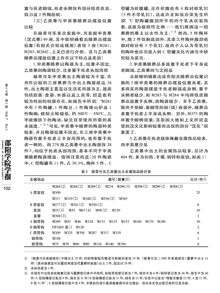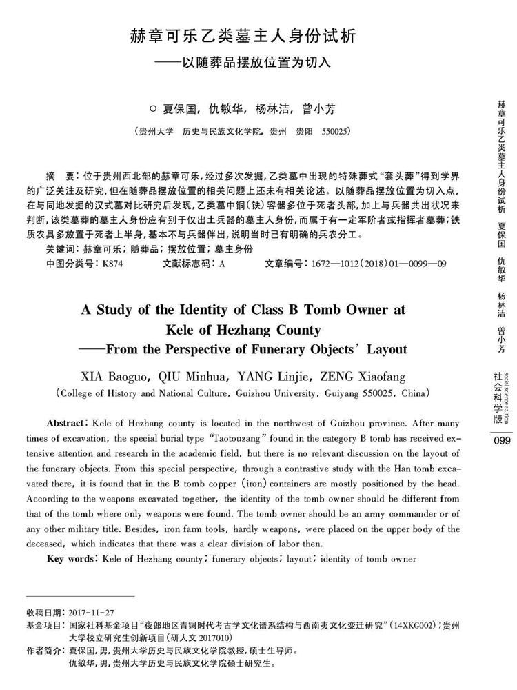 2018年第17卷第1期《邵阳学院学报》(社会科学版)刊载贵州大学历史与民族文化学院(中国文化书院)历史系夏保国教授及历史与民族文化学院研究生仇敏华、杨林洁、曾小芳国家社科基金项目“夜郎地区青铜时代考古学文化谱系结构与西南夷文化变迁研究”(14XKG002)、贵州大学校立研究生创新项目(研人文2017010)成果,题:赫章可乐乙类墓主人身份试析——以随葬品摆放位置为切入。全文如下: