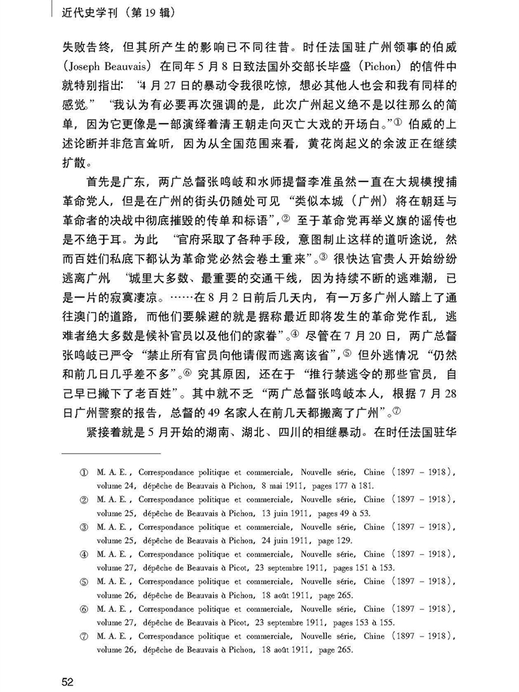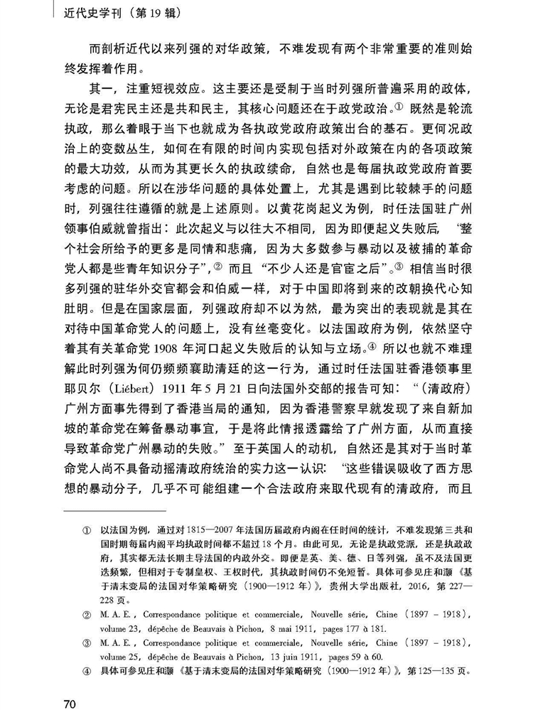 2018年第19辑《近代史学刊》刊载贵州大学历史与民族文化学院(中国文化书院)历史系庄和灏副教授贵州省2015年度社科规划项目“近代法国文献所见中国帝制存废历史研究”(项目号: 15GZQN22)研究成果,题:辛亥革命的法国认知。全文如下:
