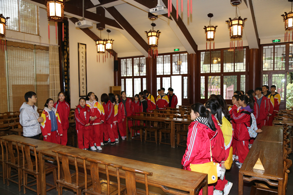 在书院内,办公室助理为同学们讲解了继承古代书院文化传统、体现作为现代书院为学育人理念的《中国文化书院学规》和做人行为规范的《中国文化书院条规》,与同学们一道共同学习了反映中国传统文化理想境界的《礼运·大同篇》石刻及其思想内容,参观和了解反映儒家学说创始人、教育家及思想家孔子一生建立文化伟业、传播价值理想事迹的《孔子圣迹图》。