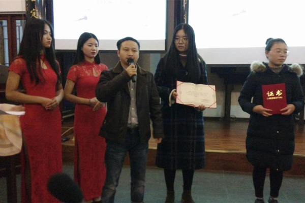 商正华先生在致辞中表示,有幸作为特邀嘉宾到场观看大赛,感谢学院领导厚爱和朱兵老师邀请,衷心希望莘莘学子在努力传承和弘扬好中华文化的同时,接纳与包容世界的文化,祝同学们有一个光明的未来。