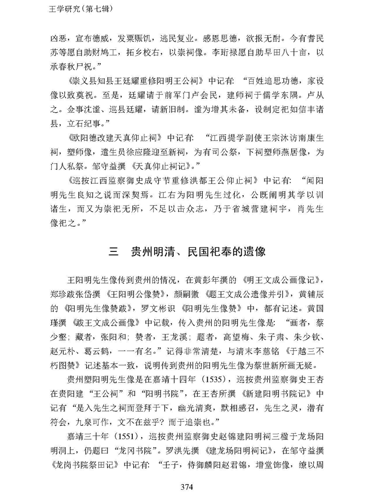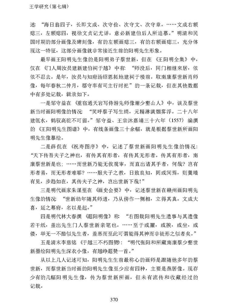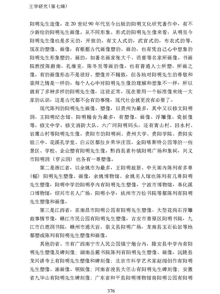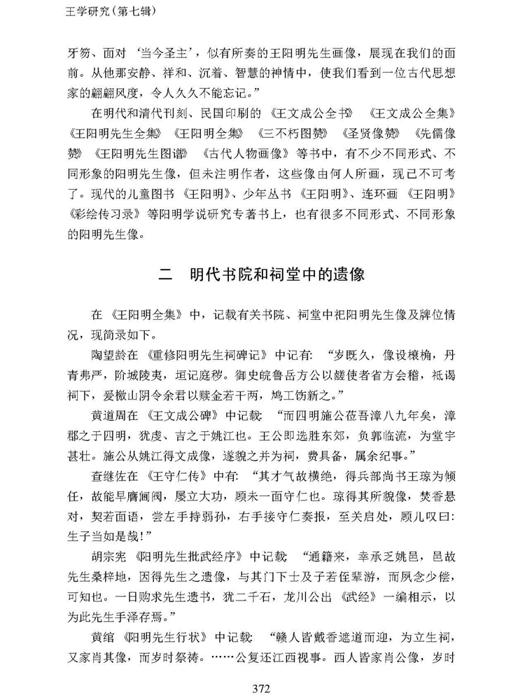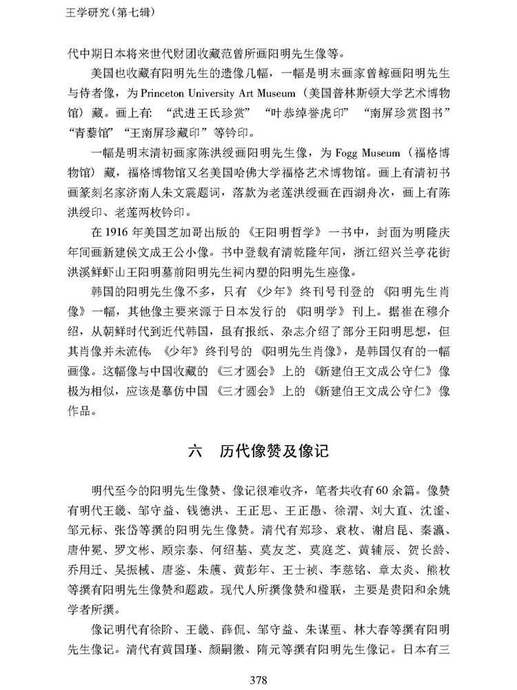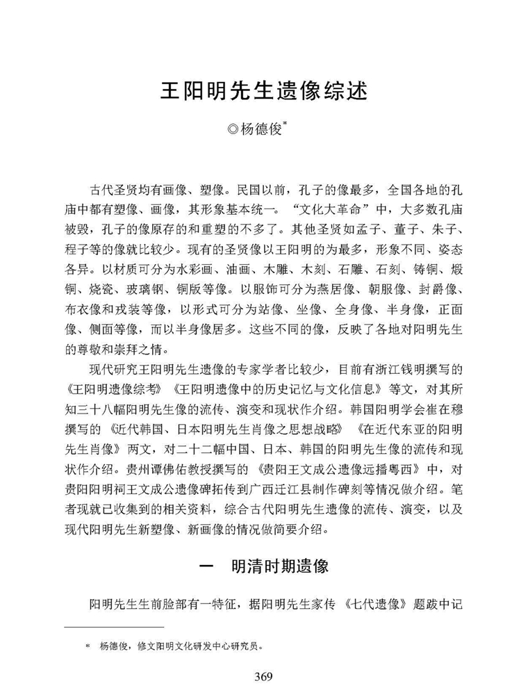 2018年《王学研究》第七辑刊载贵州省修文阳明文化研发中心研究员、贵州省儒学研究会副会长、贵州大学中国文化书院特聘兼职研究员、黔浙文化合作论坛阳明学研究中心研究员、全国阳明史迹保护研究联盟专家委员会专家、《王阳明大辞典》编纂指导(学术)委员会委员杨德俊先生论文,题:王阳明先生遗像综述。全文如下: