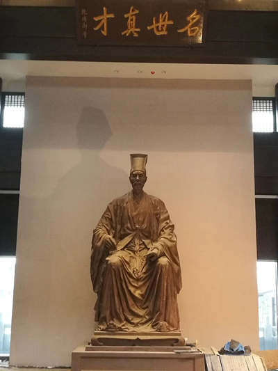 第五站是王阳明与黔中三大弟子的雕像。王阳明当年的黔中弟子有数百名之多,其中三大弟子最为著名:陈文学,汤伯元,叶子苍。他们考中进士或举人,外出为官。王阳明去世之后,他们辞官回乡,大力传播阳明心学。1534年,陈文学,汤伯元,叶子苍联合黔中王门弟子数十人,倡导在贵阳建立“阳明书院”并成为中国最早的阳明书院之一。他们因此进入《王阳明年谱》,其中两人的图像保留下来。