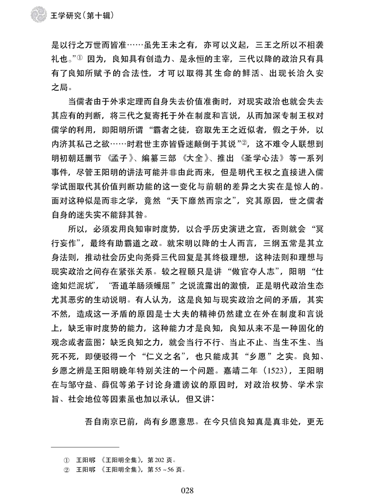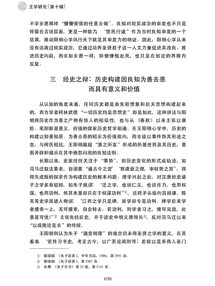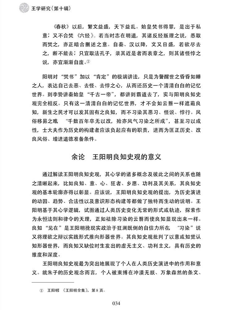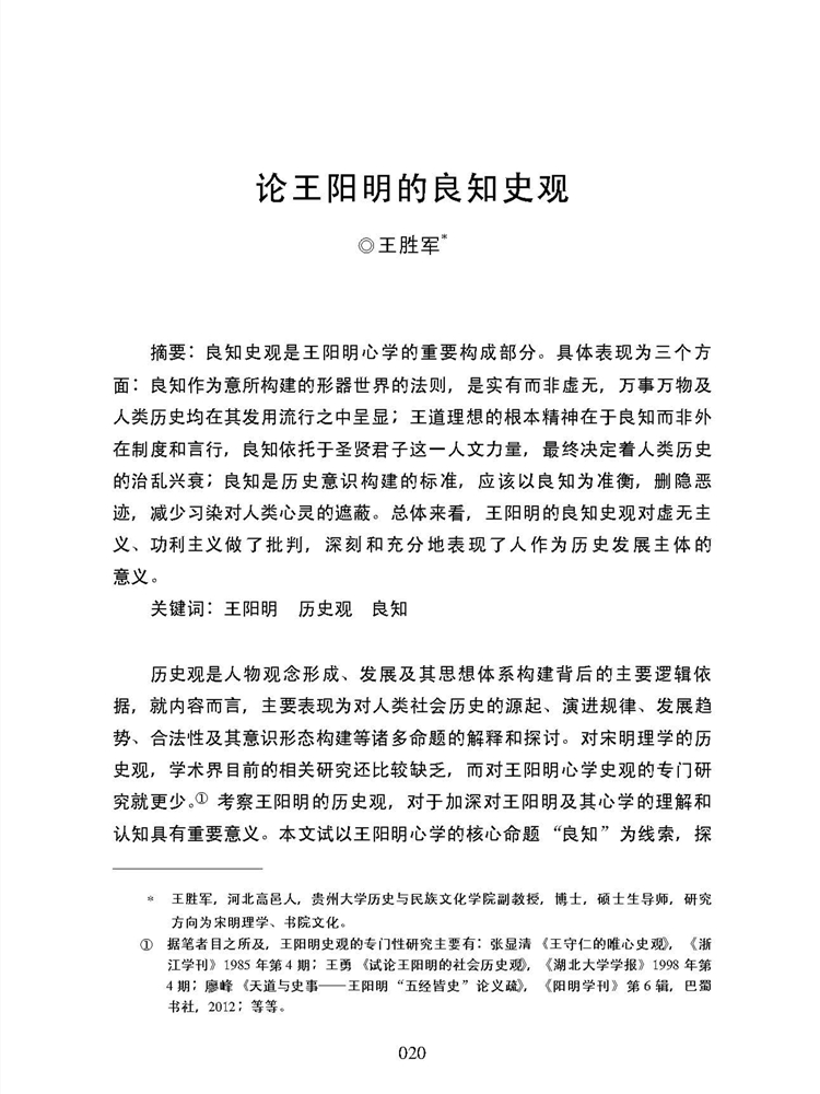 2019年第1期《王学研究》(第十辑)刊载贵州大学历史与民族文化学院(中国文化书院、阳明文化研究院)教授、贵州大学中华传统文化与贵州地域文化研究中心研究员王胜军博士阳明学研究论文,题:论王阳明的良知史观。全文如下: