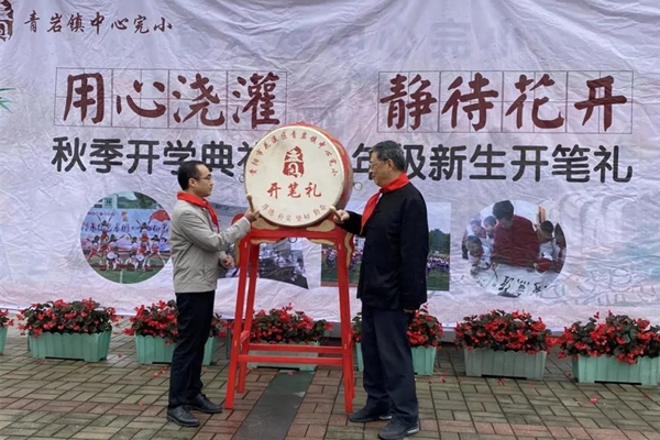 岁属庚子,序移金秋;师生嘉会,开笔启蒙。9月29日,青岩镇中心完小举行了2020年一年级新生开笔礼仪式。正衣冠、击鼓明志、诵读经典、三礼拜师……青岩小学一年级新生们端严肃穆,躬身行礼,追思圣贤,崇德尚礼,以实际行动传承、弘扬中华优秀传统文化。