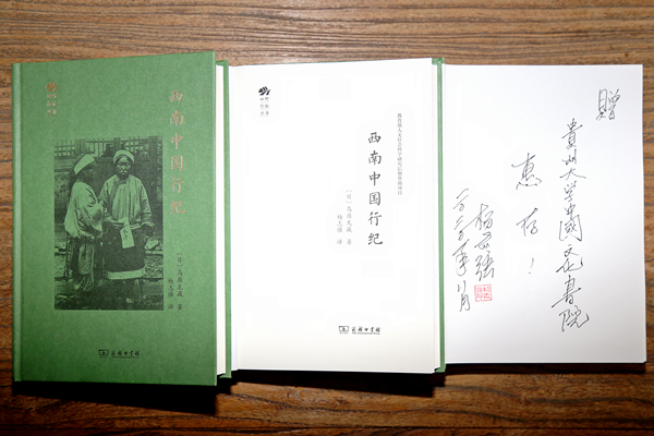 近日,贵州大学中国文化书院暨贵州大学中华传统文化与贵州地域文化研究中心获赠贵州大学历史与民族文化学院杨志强教授编译、(日)鸟居龙藏著《西南中国行纪》一书。