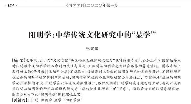 关键词:王阳明;阳明学;显学;“阳明学热”