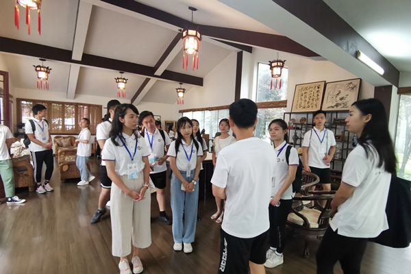 溪山如黛,万木葱茏,贵州大学中国文化书院迎来一群“特殊”客人。7月17日上午,参加由贵州大学港澳台办指导、校团委执行的教育部2021年交流项目及2021中国-东盟教育交流周交流活动之“2021年度澳门大学生赴黔红色文化学习体验活动暨澳门回归献礼——《苦尽甘来》全国巡回演出开幕仪式”的澳门大学学生代表,在校团委组织下来到中国文化书院参加活动开幕仪式并进行传统文化参观学习。