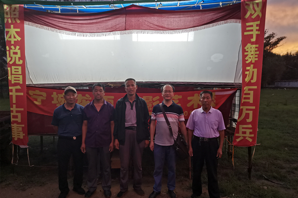 张军教授(右一)与皮影戏艺人合影