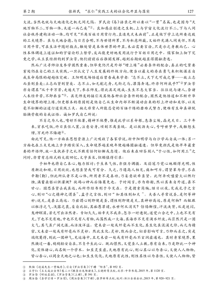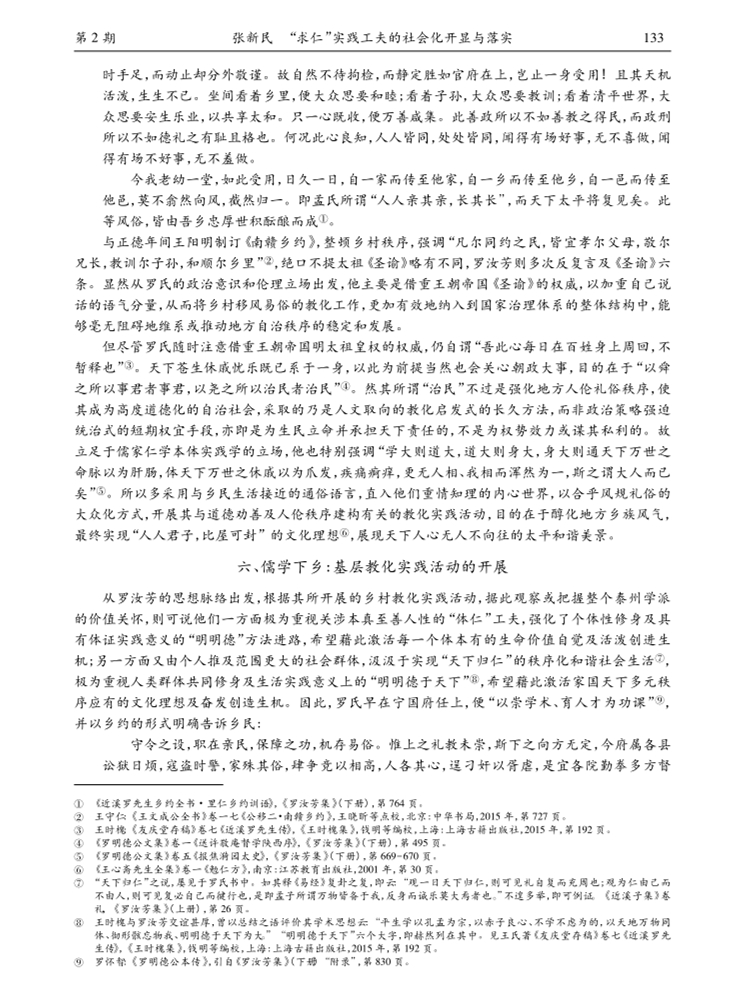 2022年3月第24卷第2期《东南大学学报》(哲学社会科学版)刊载贵州大学中国文化书院荣誉院长、孔学堂学术委员会委员张新民教授国家社会科学基金艺术学项目“晚明艺术思潮与心学理论研究”(17BA020)阶段性成果:“求仁”实践工夫的社会化开显与落实——《罗汝芳学谱》序。全文及学人简介如下: