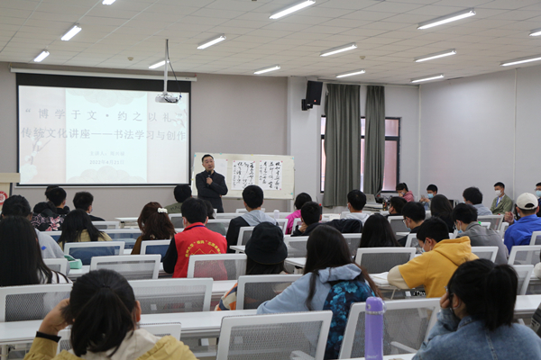 由共青团贵州大学委员会主办的2022年“相约国风盛世,绽放青春风采”国风文化节期间,4月21日,应校团委邀请,贵州大学中国文化书院教授、贵州大学书法协会指导教师周兴禄为学校书法社团的书法爱好者作了题为“书法学习与创作”的讲座。