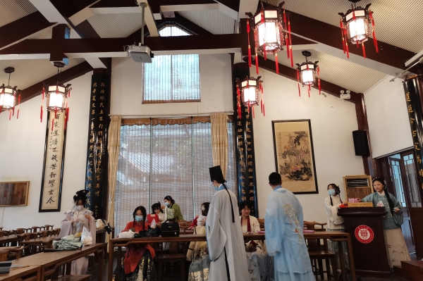 秋风送爽,硕果飘香。在这个满载收获和喜悦的金秋,挂靠中国文化书院的学校学生传统文化社团——贵州大学汉凤府迎来成立第10周年纪念日。为进一步加强汉风府的凝聚力和创造力,使2022级新生更好地认识和了解汉风府、增进彼此之间的交流与沟通,使社团更好地发光发亮,汉风府新生见面会于2022年10月30日周六早10:00在我校北校区中国文化书院举行。汉风府全体新成员以及中国文化书院张清老师参加此次活动。