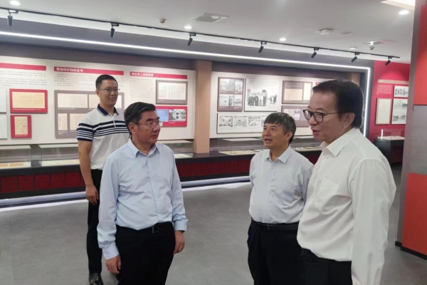 来黔出席2023现代化工与新材料数智化转型升级高峰论坛之际,8月9日,中国石油和化学工业联合会党委副书记、副会长傅向升到校调研考察。贵州大学党委书记李建军教授、校长宋宝安院士陪同调研考察贵州大学校史馆、贵州大学中国文化书院、贵州大学绿色农药国家重点实验室。