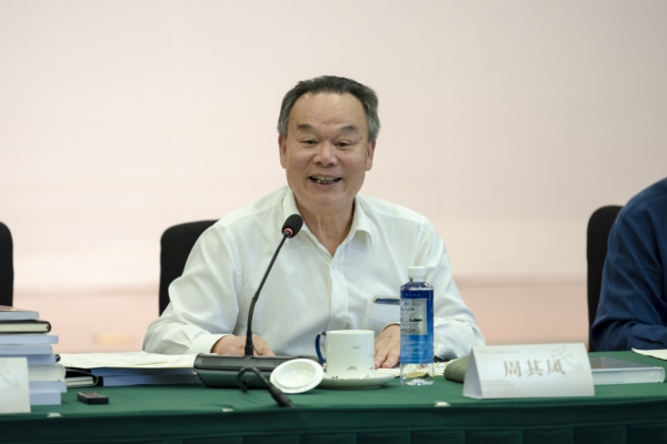 《民藏》总编纂,武汉大学国学院名誉院长郭齐勇教授主持会议。贵阳孔学堂文化传播中心党委书记、主任戴建伟传达习近平总书记在文化传承发展座谈会上的重要讲话精神。武汉大学党委副书记沈壮海,中国科学院院士、北京大学原校长周其凤针对《民藏》编纂作讲话。《民藏》编辑部主任孔劲松介绍已完成书稿整体情况,清华大学人文学院周绚隆教授,北京大学中国古文献研究中心主任廖可斌教授,中国人民大学书报资料中心哲学学科执行主编冯琳、《南京大学学报》执行主编王浩斌、《海南大学学报(社会科学版)》主编刘家诚、《湖北大学学报(哲学社会科学版)》执行主编郭康松等期刊负责人先后围绕古籍整理与期刊出版等相关内容进行交流发言。研讨会务实、高效。