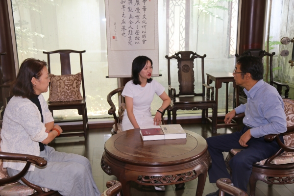 在书院仁文厅,中国文化书院院长张清教授、副院长何茂莉教授与何丹主任就长期以来阳明文化(贵阳)国际文献研究中心与中国文化书院(阳明文化研究院)共同就中华优秀传统文化特别是阳明文化传承弘扬、阳明文化学术研究信息特别是阳明珍贵文献资源共享与传播等畅叙交流。