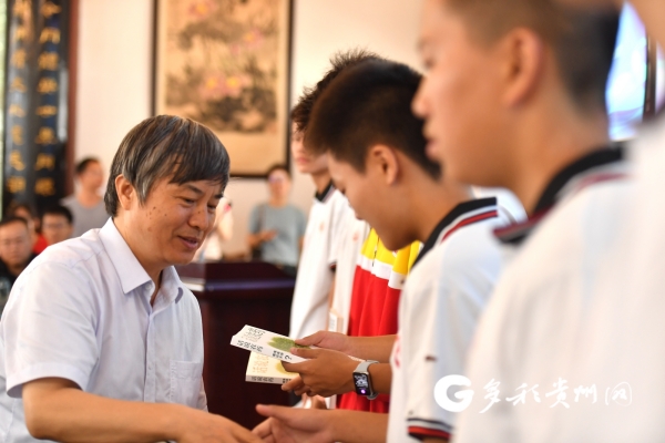 贵州青少年英才计划导师、贵州大学校长宋宝安院士向学生们赠送科普书籍