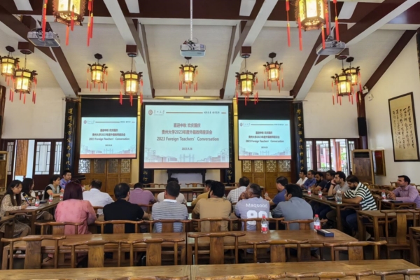 中国“中秋”及“国庆”佳节即将来临之际,9月26日,贵州大学国际交流与合作处、教师工作处在东校区中国文化书院勉学堂召开贵州大学2023年度外籍专家教师“喜迎中秋 欢庆国庆”座谈会。在校外籍教师、外籍博士后及家属,校国际交流与合作处、教师工作处等部门负责同志及工作人员参加座谈。座谈会由国际交流与合作处副处长周斌主持。