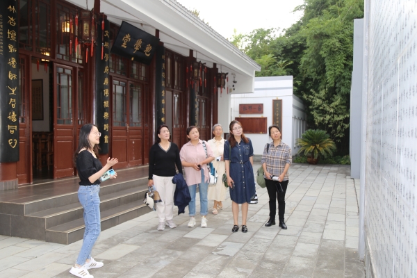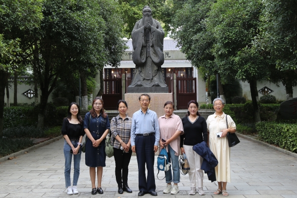 在书院大门前,扎西玉珍等客人一行参观由香港孔教学院院长汤恩佳博士特意赠送中国文化书院的孔子铜像,体会作致礼状铜像所表达的中国传统儒家文化“仁爱、正义、中正、和谐”理念;听取自贵州教育文化鼻祖东汉尹珍先生首创务本学堂以来,至明清时期龙冈书院、阳明书院、贵山书院等所形成“六千举人,七百进士”贵州教育文化历史盛况及“贵山书院”石刻所体现贵州大学“书院—学堂—大学”历史文化一脉相承的介绍。