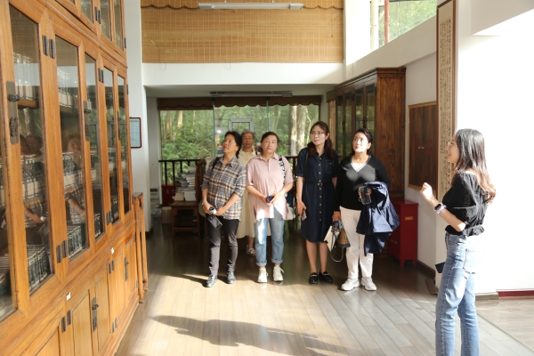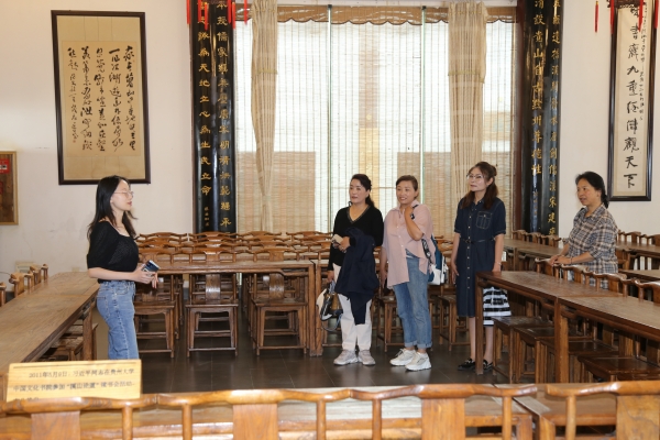 参观中,客人了解书院在中华优秀传统文化与贵州地域文化方面的研究积累、学术交流与文化传承,传统文化典籍收藏与利用、开展线下及线上《中国文化概论》《阳明学概论》等素质教育课程教学,学校师生以及挂靠书院学校学生传统文化社团在书院相关教师指导下在书院开展以传统文化为核心的文化传承及素质教育活动等情况。