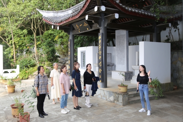 在镌刻有《贵州大学中国文化书院学规》的巨幅石刻前,客人一行听取关于中国文化书院创院荣誉院长张新民教授创建书院,传承中国古代书院教育思想与文化、为书院文化建设及引领中华优秀传统文化与贵州地域文化学术研究所作杰出贡献、所亲撰《学规》内涵介绍;通过对书院《礼运•大同篇》巨幅石刻参观,了解并体会其所强调的“大道之行,天下为公,选贤与能,讲信修睦”思想内涵和中华文化对“大同”美好未来的期盼。