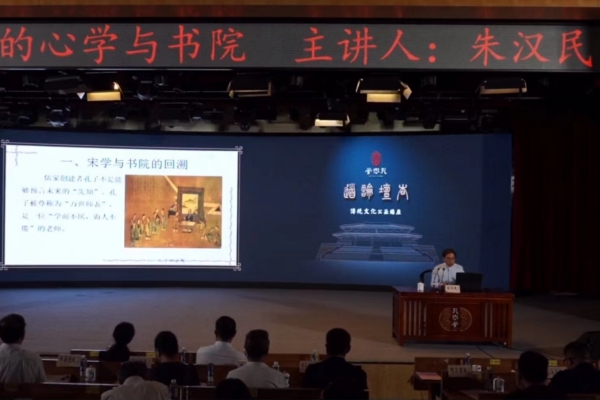 讲座中,朱汉民教授从宋学与书院的回溯、龙场悟道与黔赣书院、良知之教与浙桂书院、王阳明对书院精神的诠释四个方面,分析了书院教育和师道传承的密切关系,揭示了儒家教育的过程即是“道”的实现过程,阐释了阳明心学的核心思想,梳理了阳明心学传播与书院讲学之间的互动,将阳明心学与书院教育之间的关联娓娓道来。
