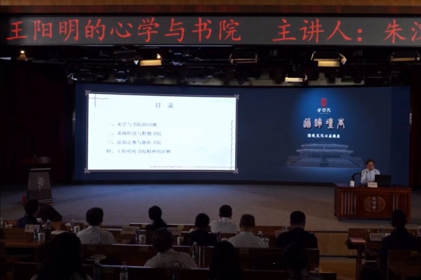 “在进一步生活磨炼、学术思考后,王阳明提出‘致良知’。”朱汉民教授指出,王阳明将自己的体悟均凝聚于“致良知之教”中,晚年确立“致良知”立言宗旨,并继续以书院传播其学。“王阳明将心学思想与书院传道结合起来,推动了书院制度与书院精神的复兴。”