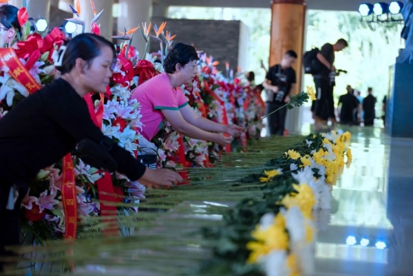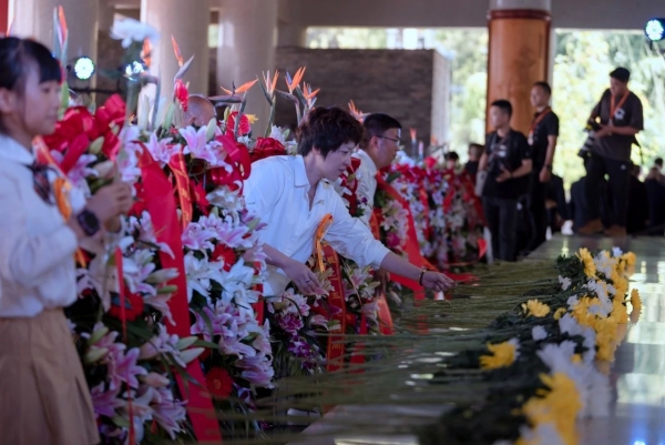 礼毕。观礼的市民们纷纷拾阶而上敬献鲜花,隆重而典雅的仪式感染着每一位参礼人。
