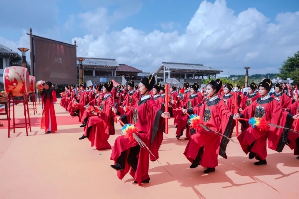 “献舞!”随着中国宫廷古老雅乐的鸣响,64名佾生们排成八行八列,右手执羽,左手执籥,为祭孔仪式献上行云流水般的八佾舞,以中国古代规格最高的祭祀舞蹈,展现礼节之美。