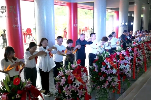 9月28日上午9点28分,“启户”声起,2023(癸卯)年贵阳孔学堂祭孔典礼正式举行。孔子后裔代表、孟子后裔代表、省内文庙代表、企事业单位代表、市民代表和学生代表等500余人齐聚大成殿前,整理衣冠、庄然肃立,致敬圣贤、传承文明。贵州大学中国文化书院(阳明文化研究院)副院长何茂莉教授应邀代表书院参加典礼并与其他相关单位代表一道敬献花篮,致敬先师。
