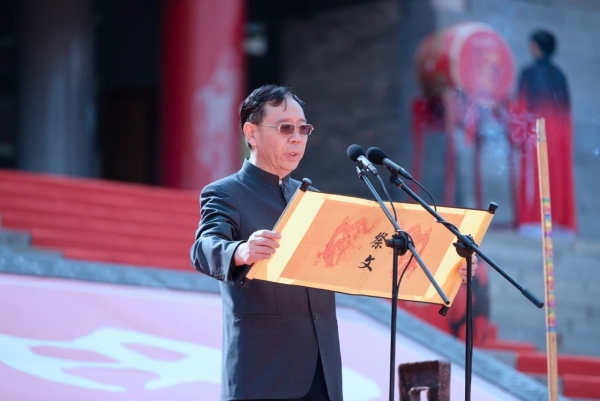 “人心惟危,道心惟微。虞廷渺矣,文武难追……”。国际儒学联合会副会长、贵阳孔学堂学术委员会执行主席徐圻教授恭读祭文。主祭人与全体人员三行大揖礼,致奠于大成殿阶下,肃拜追远。