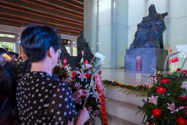 “献乐!”随着主祭人的介绍,全场齐诵《礼运·大同篇》。两千五百多年来,孔子及其所代表儒家思想对中国和世界都有深远的影响。司马迁曾在史记里引用《诗经》中的句子赞颂孔子,谓之“高山仰止,景行行止。虽不能至,然心向往之”。