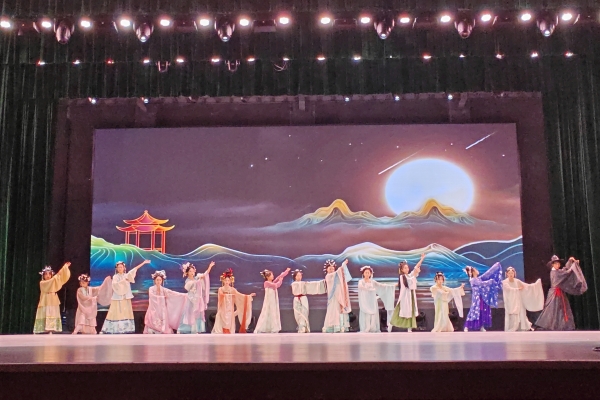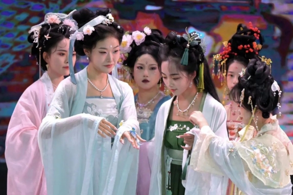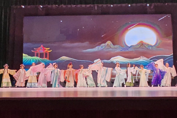若大的剧院座无虚席,展演在同学们脸上充满的期待中开始。随着一个个体现“国风盛世”、展现同学们“青春风采”的节目渐次上演,挂靠贵州大学中国文化书院的学校学生传统文化社团“贵州大学汉风府”精心准备的汉服走秀与舞蹈表演《霓裳》,将观众带入中华优秀传统文化的华章之美与深远意蕴之中。