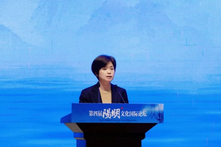 张骅在致辞中代表赣州市委、市政府向论坛的胜利举办表示热烈的祝贺,向莅临论坛的各位领导、专家学者和嘉宾朋友们表示诚挚的欢迎。她说,赣州是王阳明“立德、立功、立言”的重要实践地,也是王阳明“知行合一”思想的主要形成地和成熟地,王阳明已成为赣州的重要文化标识。一直以来,我市高度重视阳明文化的研究、保护和传承,特别是2017年国家级学会——中国明史学会王阳明研究分会落户赣州,至今已连续成功举办了3届阳明文化国际论坛,成为全国乃至全球的王阳明研究学术高地。真诚希望各位专家学者深入交流研讨,发表真知灼见,共同把以阳明文化为代表的中华优秀传统文化发扬光大,为赣州唱响阳明文化品牌、建设赣州革命老区高质量发展示范区,提供有力的文化支撑和强大的精神力量。