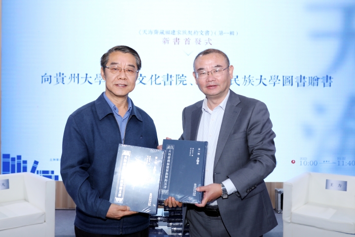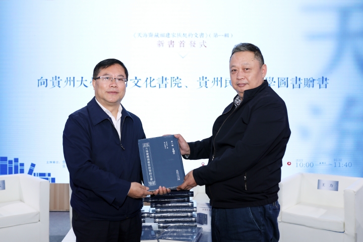 2023年10月22日,由贵州人民出版社出版的《天海斋藏福建家族契约文书》(第一辑)新书首发式在第四届孔学堂书博会举行。《天海斋藏福建家族契约文书》是贵州人民出版社策划实施的大型珍稀古籍文书整理出版项目,拟分辑出版120册。首发式上,贵州大学中国文化书院(阳明文化研究院)暨贵州大学中华传统文化与贵州地域文化研究中心、贵州民族大学图书馆分别获赠图书。