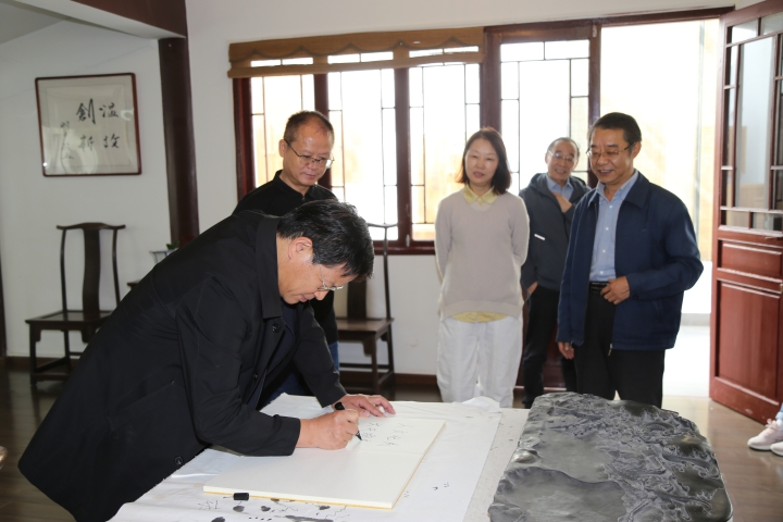 在参观结束后,王海、王卫东在仁文厅分别题写“人文化成 大开胸襟”“知行合一”留赠书院。