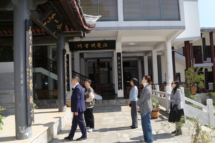 2023年10月30日上午,华东理工大学校党委副书记沈海涛一行在贵州大学学校办公室及外国语学院办公室人员陪同下参观贵州大学中国文化书院。中国文化书院负责人及办公室工作人员欢迎客人到来,向客人介绍书院内外文化设施及承载中国古代书院传统所形成的学术研究、文化传承、素质教育功能发挥相关情况。