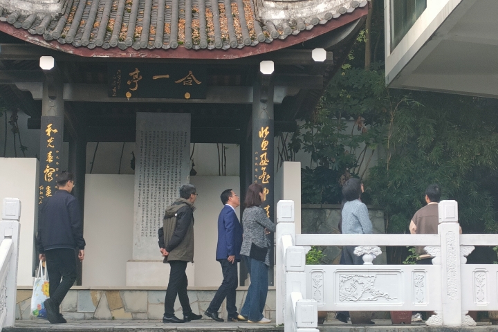通过书院石刻、牌匾、楹联、字画特别是《礼运•大同篇》等参观考察,客人们了解并体会中华优秀传统文化所主张的“至平至公,至仁至义,至亲至爱,必渐变徐图,由据乱而升平,由升平而太平,由太平而小康,由小康而大同”的天下大同理想追求;在合一亭、阳明文化相关楹联与石刻前,客人们现场体会中华文化所包含的“天人合一、身心合一、道器合一、知行合一”深刻哲理,感受王阳明先生在龙场悟道之后“壮思风飞冲情云上和光春霭爽气秋高”的广阔胸怀和豁然开朗心境,领悟阳明先生所形成的中国儒学发展的新高峰——包括“心即理、知行合一、致良知”在内的完整思想体系;在涵远读书楼的丰富典籍藏书前,近距离了解《永乐大典》、《四库全书》等中华文化典籍收藏利用情况。