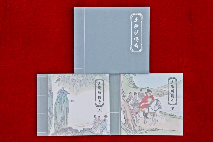 《王阳明传奇》(上下)由中共绍兴市上虞区陈溪乡委员会、绍兴市上虞区陈溪乡人民政府编,郑哲军、蔡明任编委会主编,王颂敏配文,范明良绘图,以连环画册形式记载描绘了王阳明的传奇一生。