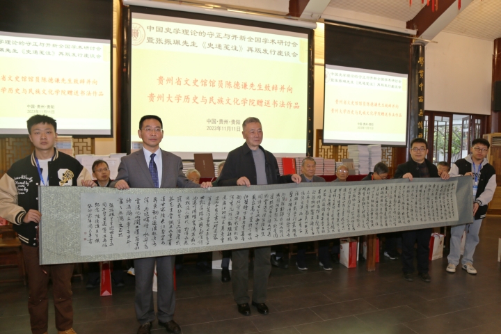 2023年11月11日,“中国史学理论的守正与开新全国学术研讨会暨张振珮先生《史通笺注》再版发行座谈会”在贵州大学中国文化书院、贵州大学历史与民族文化学院隆重召开。