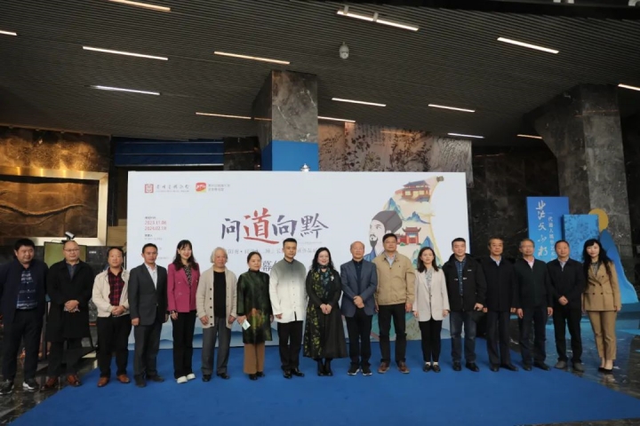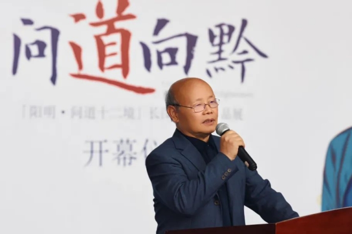 11月8日,由贵州省博物馆和贵州日报报刊社文旅新闻部主办的问道向黔——“阳明·问道十二境”长图暨书画作品展,在贵州省博物馆开展。贵州省人大常委会原副主任、省文史馆原馆长、阳明文化转化运用工程学术委员会副主任委员顾久,贵州日报报刊社总编辑李卫红,贵州日报报刊社副社长孙雁鹰,贵州省博物馆党委书记李强在开幕式上致辞。