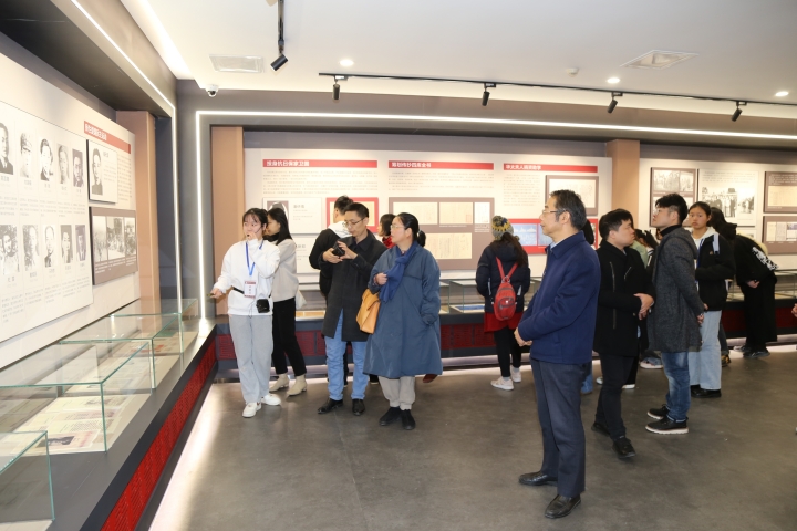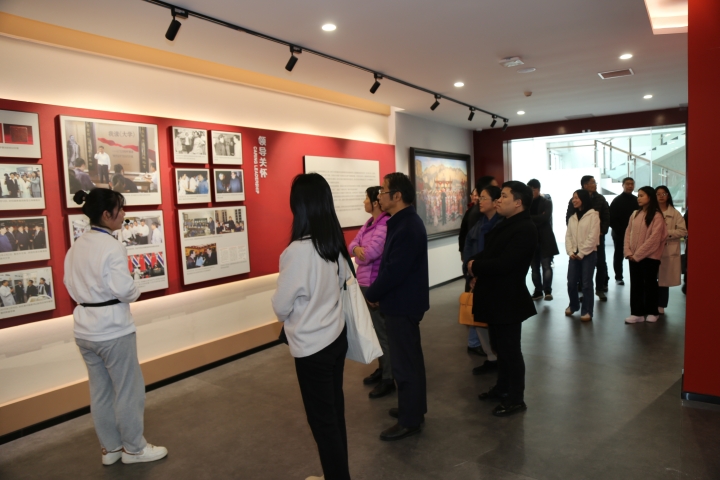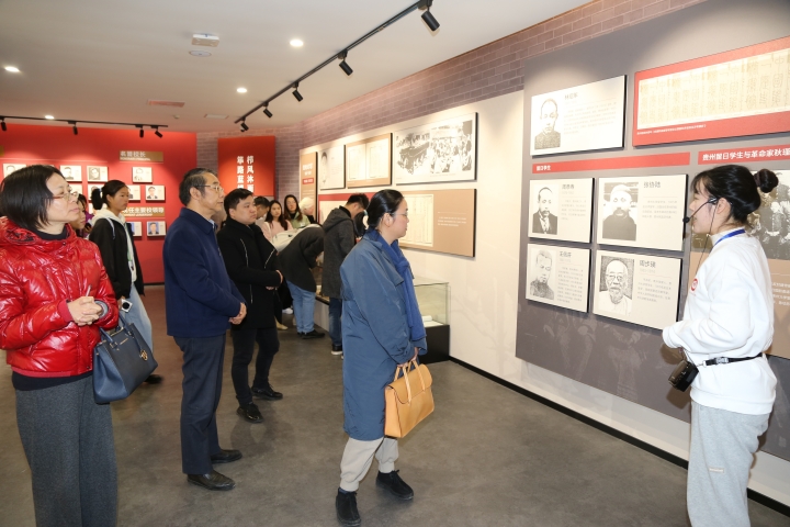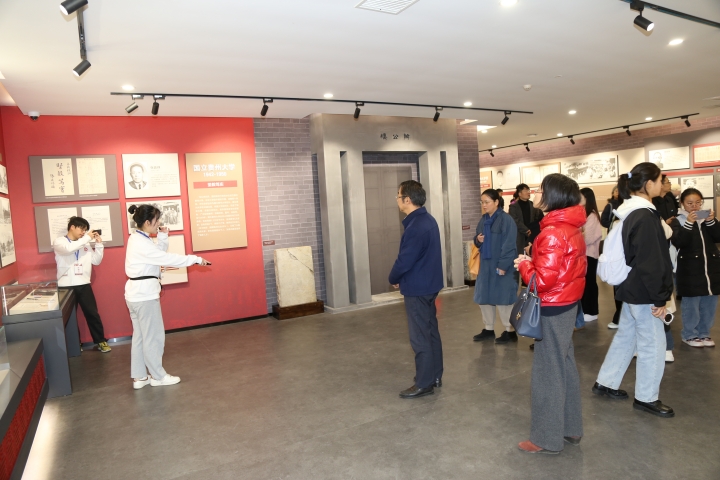 为进一步了解学校悠久历史与文化底蕴、传承贵大文化,激发“知校、爱校、荣校、兴校”的自豪感、荣誉感和责任感,引导党员深入了解党史、校史,激励广大党员牢记党的历史使命,2023年11月17日下午,贵州大学中国文化书院组织当日无教学任务的全体教师及党支部党员、办公室学生助理以及学校挂靠书院学生传统文化社团代表在贵州大学新校史馆参观学习。