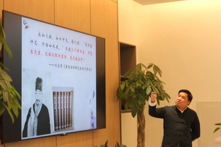 刘青衢博士的讲座分四个部分:一是阳明史评;二是阳明其人;三是阳明其学;四是阳明心学之事功智慧。