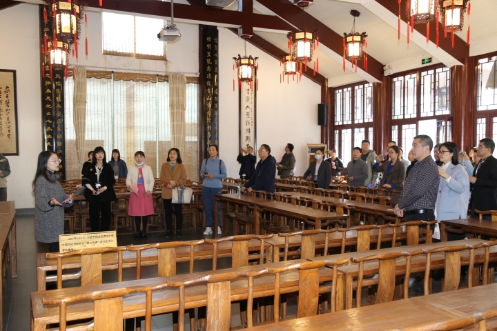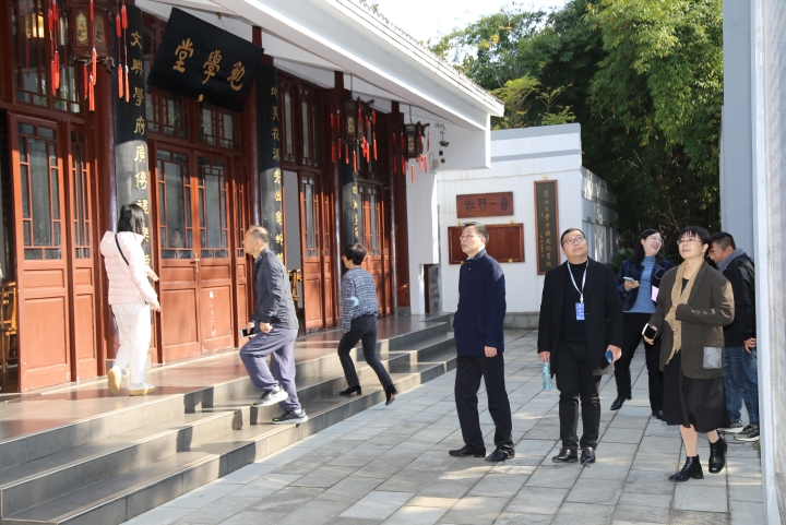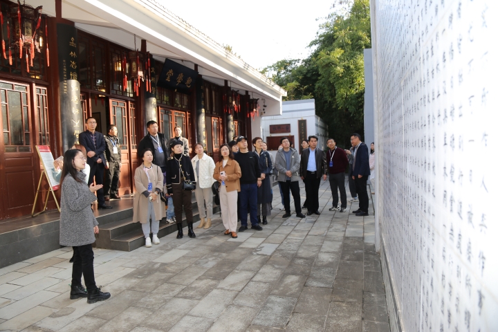 嘉宾一行参观书院孔子铜像、贵州大学前身“贵山书院”石刻、贵州教育文化鼻祖尹珍塑像,通过书院“学规”“礼运•大同篇”石刻了解中国文化书院的学术理念主张与倡导及中华优秀传统文化对美好大同和谐未来的不懈追求,听取有关中华文化“天人合一、身心合一、道器合一、知行合一”及王阳明贵州龙场悟道后所形成的“心即理、知行合一、致良知”思想介绍,了解多位国家领导人关怀学校发展、亲笔为学校题写校名,莅临书院勉学堂师生读书会现场并发表有关中华优秀传统文化当代价值传承弘扬重要讲话的情况。通过参观,嘉宾一行对对中国文化书院浓郁的文化与学术氛围留下深刻印象,对学校高度重视校园文化与学术建设予以充分肯定。