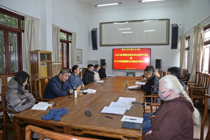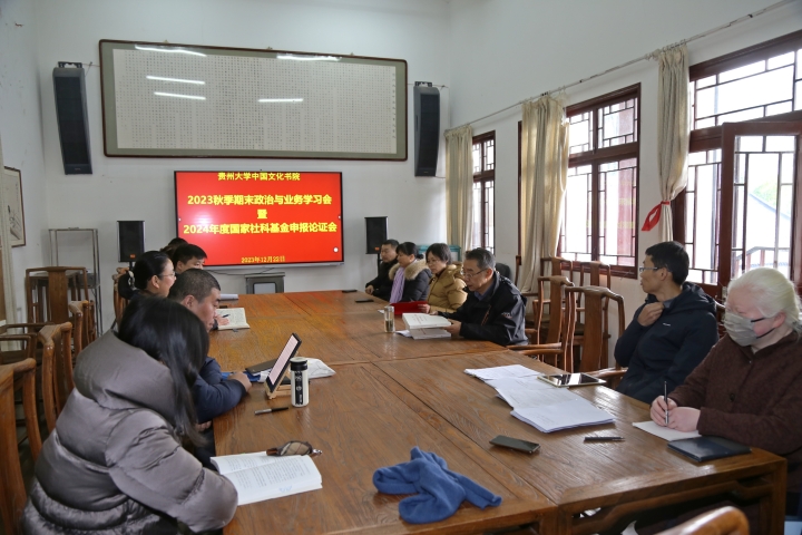 2023年12月22日下午,贵州大学中国文化书院(阳明文化研究院)在书院传习室召开2023秋季期末政治与业务学习会暨2024年度国家社科基金申报论证会,书院全体教职工参加会议。