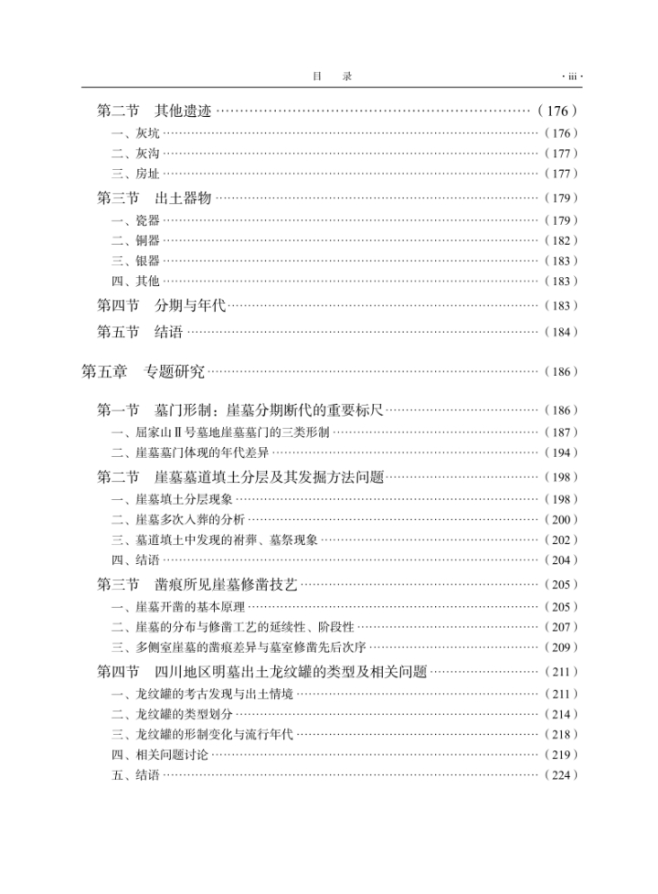 《成都屈家山Ⅱ号墓地》由科学出版社正式出版,是成都高新区新川创新科技园考古项目系列报告的第一部。报告全书共分五章,详细介绍了屈家山II号墓地汉晋、唐宋、明清各个时期的墓葬等遗迹和出土遗物,包括各类线图161幅,彩版68页幅。报告除了进行考古遗存的类型学研究、分期断代研究之外,还深入开展了五个学术专题的研究,提出了对成都地区红砂岩构造崖墓的修建、断代和科学考古发掘方法等方面的学术见解和理论认识。报告全书合计60万字,可供从事中国考古学、历史学的研究者、爱好者参考、阅读。