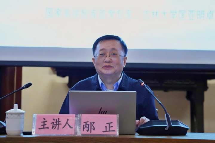 吉林大学校务委员会副主任、东北振兴发展研究院院长、国家高端智库首席专家、吉林大学原常务副校长邴正教授应邀主讲“中华文明的包容性与文化认同——学习习近平文化思想的体会”。贵州省人大常委会教科文卫委员会副主任、中国社会学会副会长、贵州省基层社会治理创新高端智库首席专家、贵州大学李建军教授主持,贵州大学副校长漆思教授及百余名师生参加讲座。