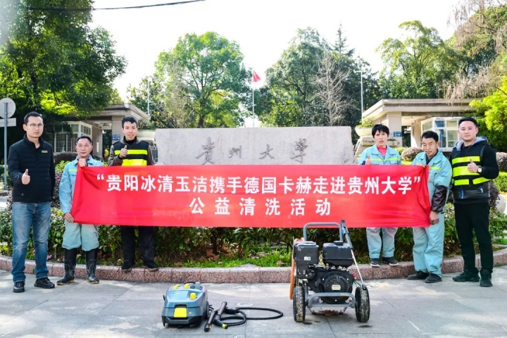 贵州大学东校区现有18座雕塑,雕塑的材料涉及花岗岩、大理石、砂岩等,受长年的风吹日晒,雕塑表面覆盖了各类污垢,严重影响了校园的美观。迎新辞旧尘嚣祛,共谱学府锦绣篇。2024年伊始,在中国农历春节即将到来之际,为了恢复校园建筑原有的生命力,让校园更加整洁靓丽,贵阳冰清玉洁物业清洁有限公司作为贵州大学长期合作的物业公司,特邀行业专业知名企业、全球清洁设备和行业解决方案引领者、德国深度清洁专家——卡赫(Kärcher)公司,并联合卡赫贵州代理商贵州奥丽齐清洁用品有限公司,于1月18日一同为贵州大学校园的各类雕塑进行了一次公益深度清洗服务。
