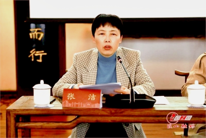 张洁带领与会人员重温习近平总书记在学校思想政治理论课教师座谈会上的重要讲话精神。