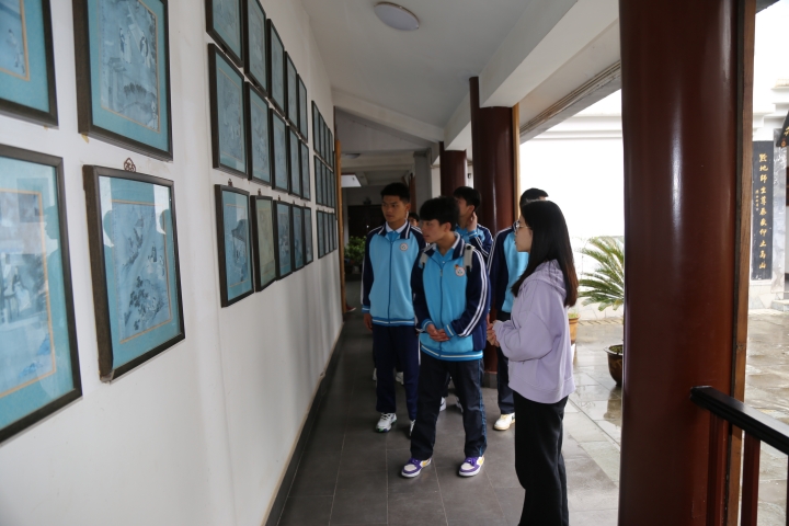 同学们参观明代著名学者仇十洲绘画和文征明题辞、描述孔子一生栖栖惶惶、奔走各国,传播价值理想、弘宣仁爱精神的《孔子圣迹图》。办公室老师及助理勉励同学们,时刻做到“孝顺父母、尊重师长、爱护同学,同时也要刻苦学习,长大后报效祖国。”同学们听取关于中国优秀传统文化中有关“天人合一、身心合一、道器合一、知行合一”哲学思想解说,对中国古代伟大思想家王阳明及其“心即理、知行合一、致良知”心学思想体系有了初步认知。在涵远读书楼下,同学们还对大学生传统文化社团在书院开展书法练习活动留下的诸多书法作品产生了浓厚兴趣。
